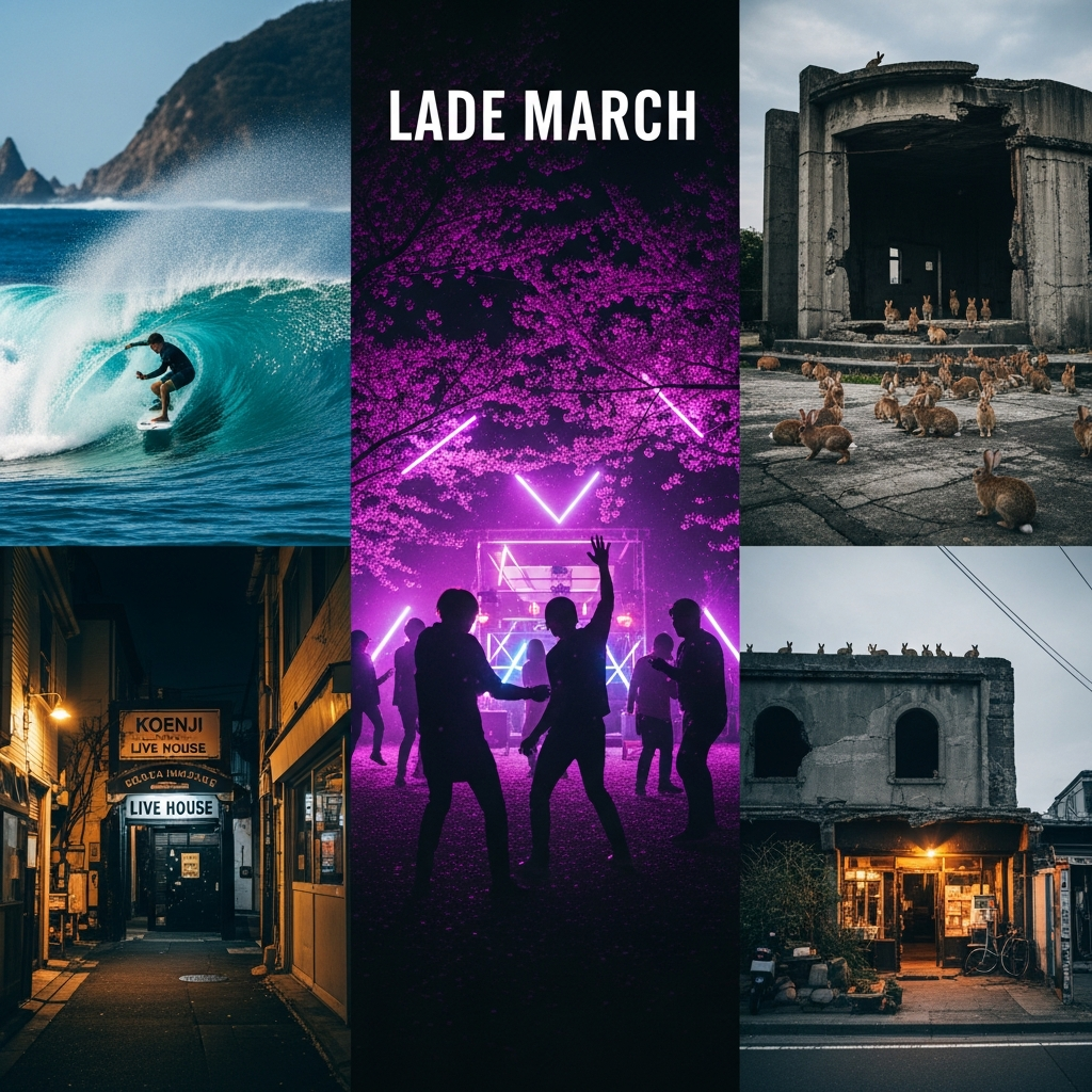 Uncover Japan’s late March secrets: underground cherry blossom raves, the surreal Rabbit Island, and hardcore Pacific surfing. Experience authentic, high-adrenaline adventures beyond the usual.